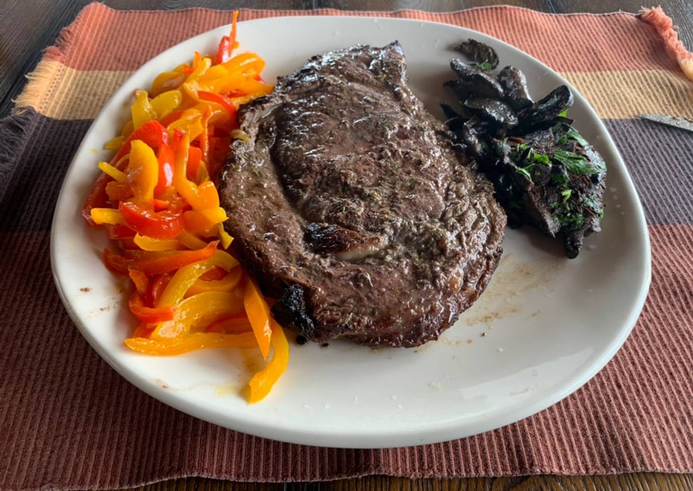 Remontémonos a la Ciudad de Santa Fe, Nuevo México. Entre ganaderos, mineros y políticos dando un tour por la ciudad, en el centro de esta existe un restaurant muy popular en donde pediremos unos ricos nachos de botana y unas enchiladas muy al estilo de por allá; y de carne pedí este delicioso rib eye al horno de leña acompañado de un cabernet.
