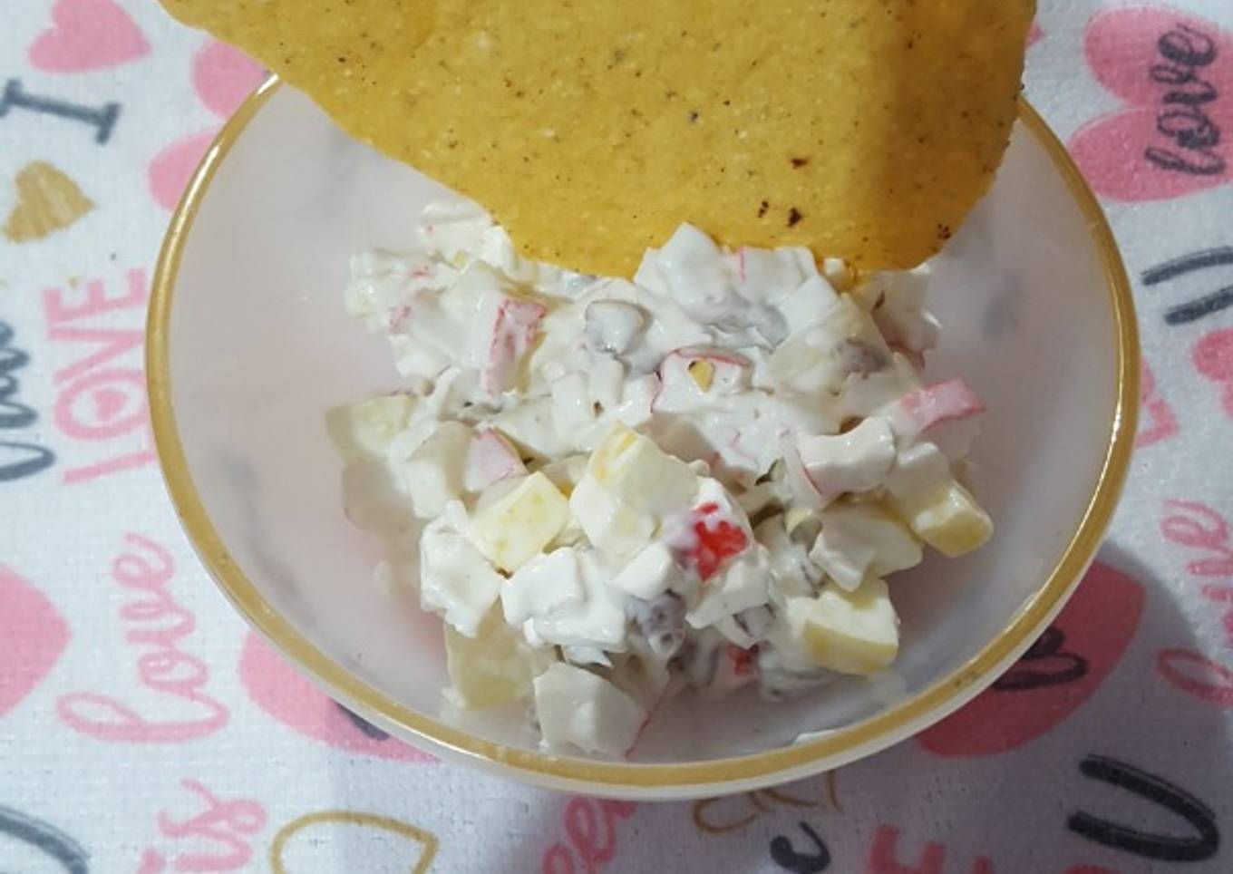 - En un bowl se coloca el surimi, la manzana y la nuez