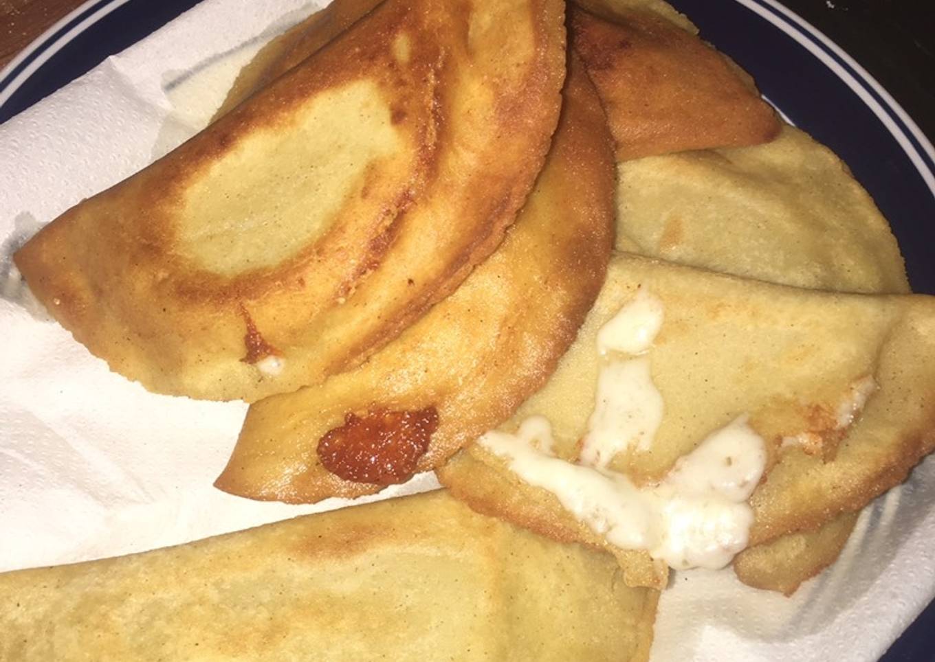 - Hacemos una bolita y extendemos en una tortillera o a mano y le agregamos en un extremo un poco de queso