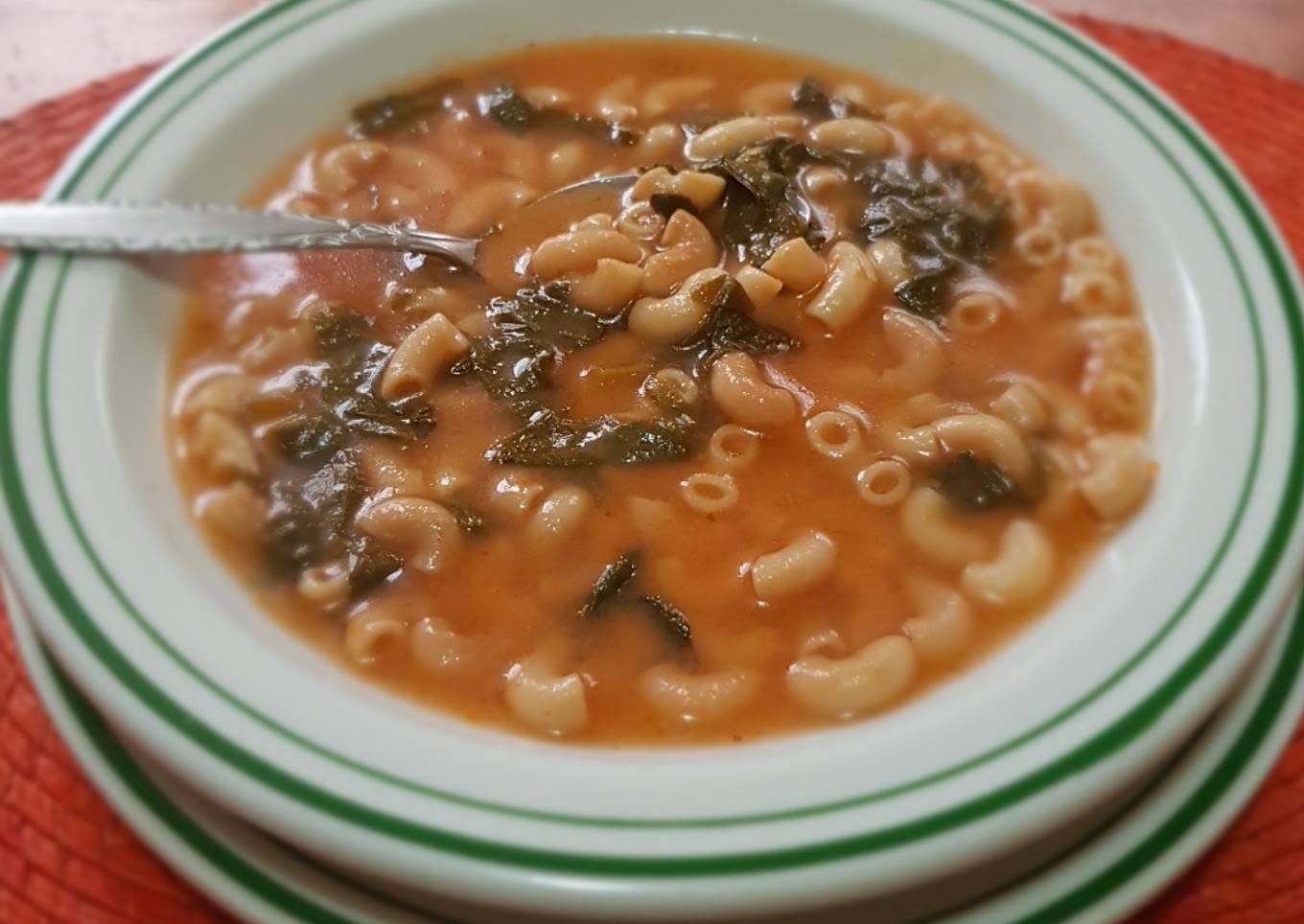 Sopa de coditos con espinacas