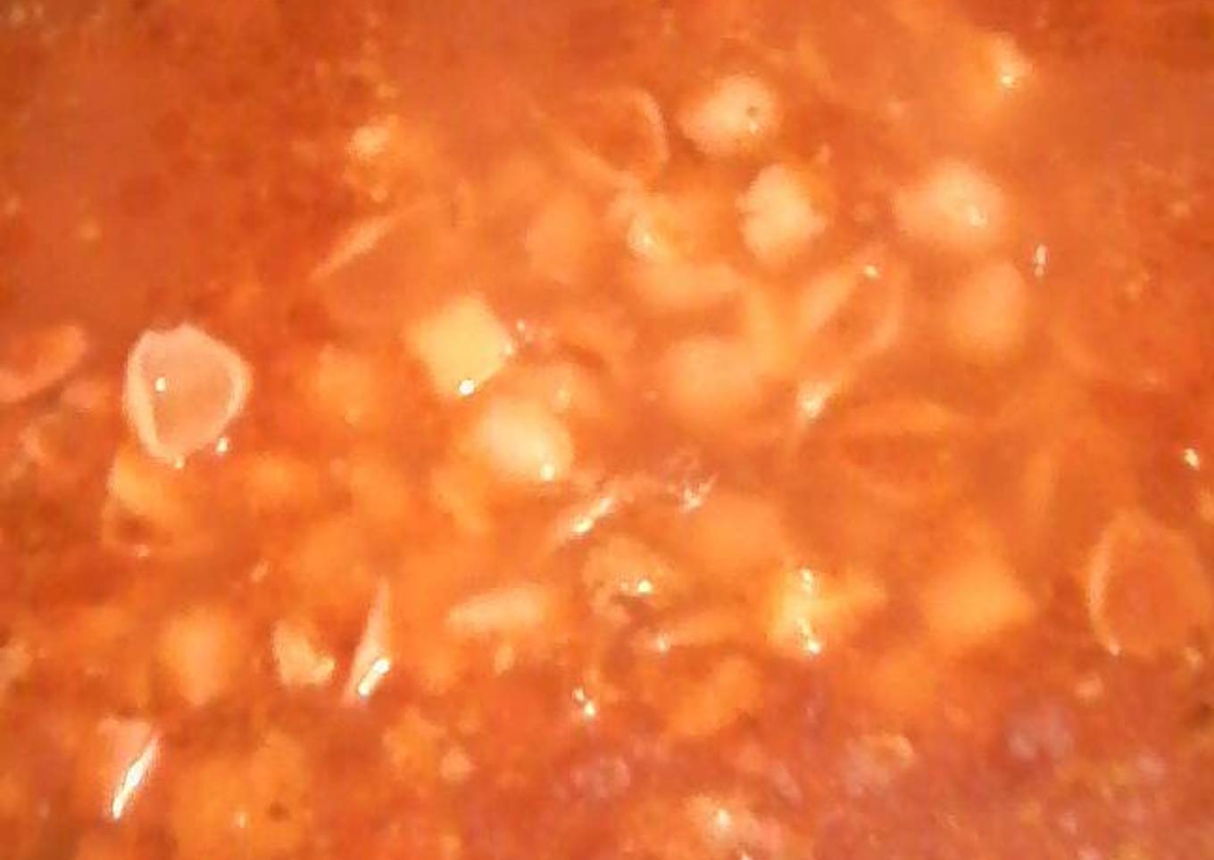 - Una vez dorada la pasta y lo demás incorporas la mezcla licuada pasándola por el colador, se agrega el agua, bajas la flama, colocas la tapa a la cacerola dejándola un poco abierta