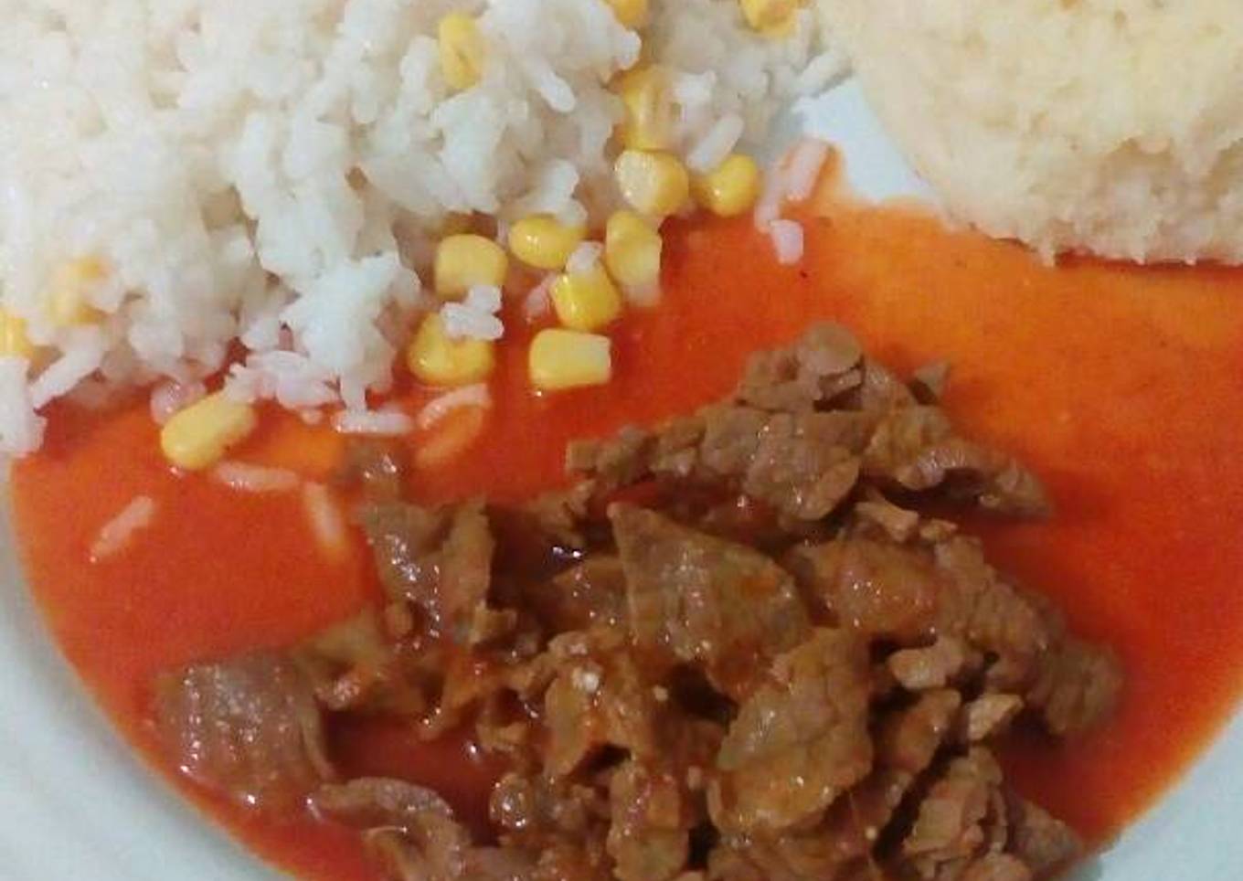 - Ya listo el bistec agrega la salsa que hicimos al principio, deja hervir y prueba de sal, agrega al gusto. Deja hervir a fuego bajo
