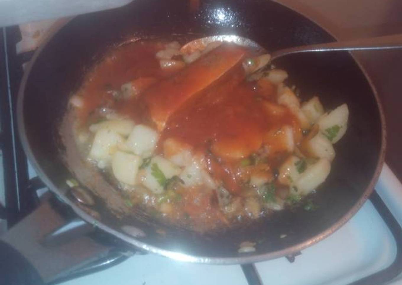 - En un sartén poner un poco de aceite, freír el ajo y la cebolla
