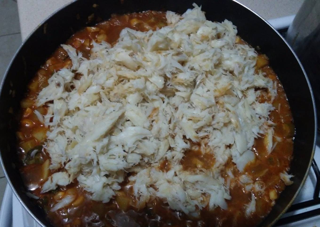 - Hervir el conjunto 20 minutos más, a fuego lento, rectificando, con más caldo de bacalao, en caso necesario retirar del fuego - Dejar reposar - Acordar, es mejor servir este plato al día siguiente, se puede comer en tortitas de pan horneado. disfrútalo en estas fiestas navideñas.