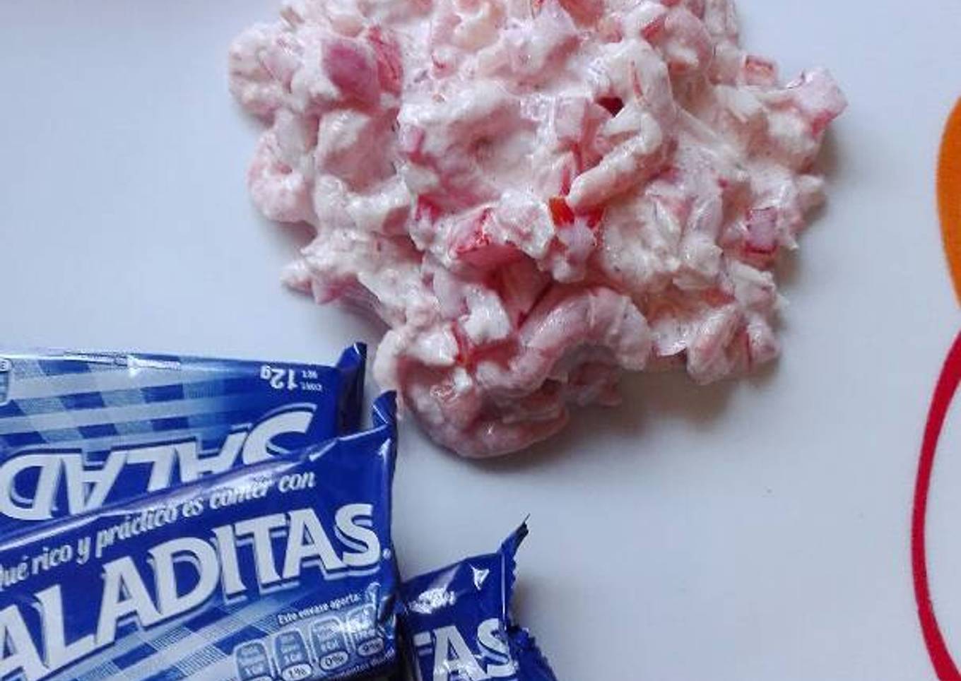 - Revolverlo todo muy bien. Después agregas la crema y la mayonesa según tu gusto y le pones sal si sientes que le falta. Puedes agregar chiles en vinagre picados.