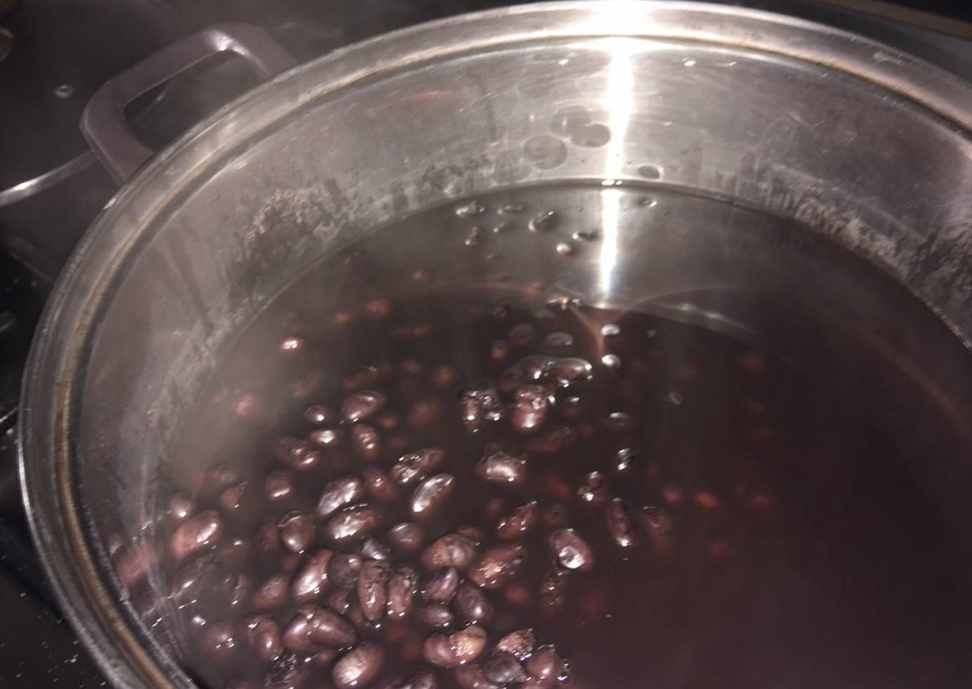 - Prender la estufa con la llama baja, tapar la olla y dejar los frijoles por 3 horas. (Para sazonar los frijoles, yo les pongo sal cada hora)