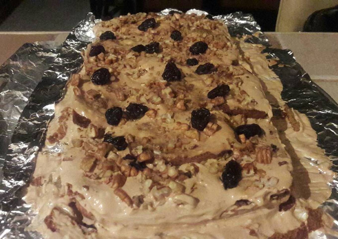 - Poner una capa de galletas otra de la mezcla, ponerle nuez picada y pasitas así sucesivamente hasta terminar