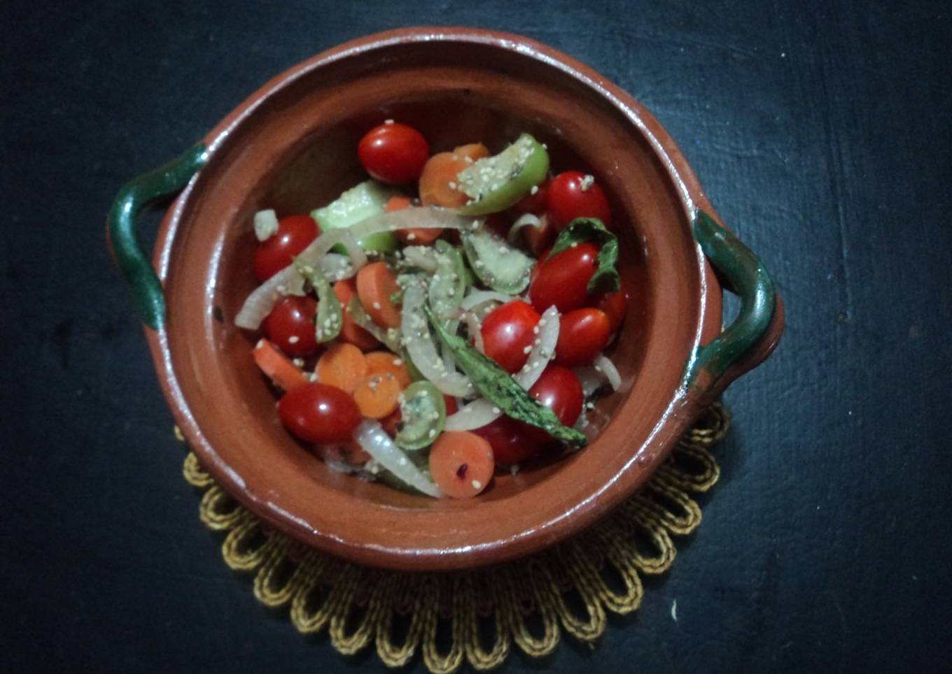 - 1/2 taza zanahorias en escabeche y cebolla en juliana