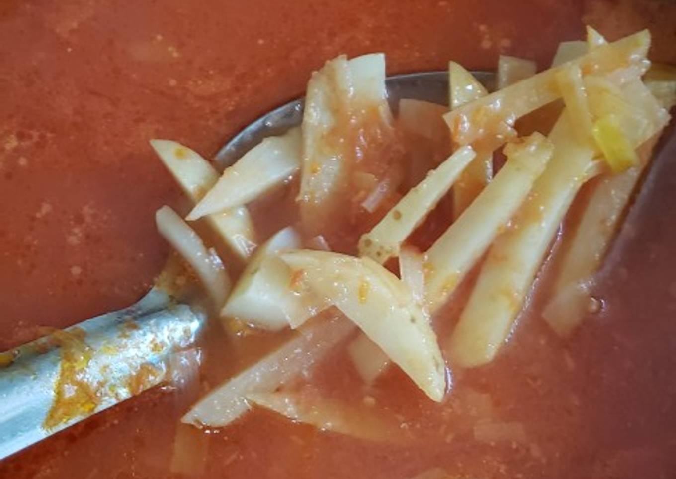 - Vaciar el jitomate previamente licuado, con una pizca de sal una ramita de perejil y dejar hervir...