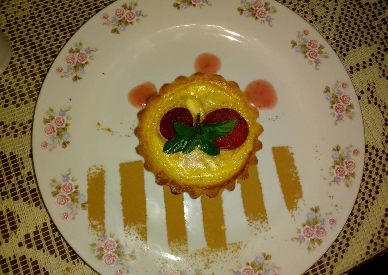 - Cuando este cocido sacar del horno y servir, decorando con coulis de fresa y cocoa en polvo.