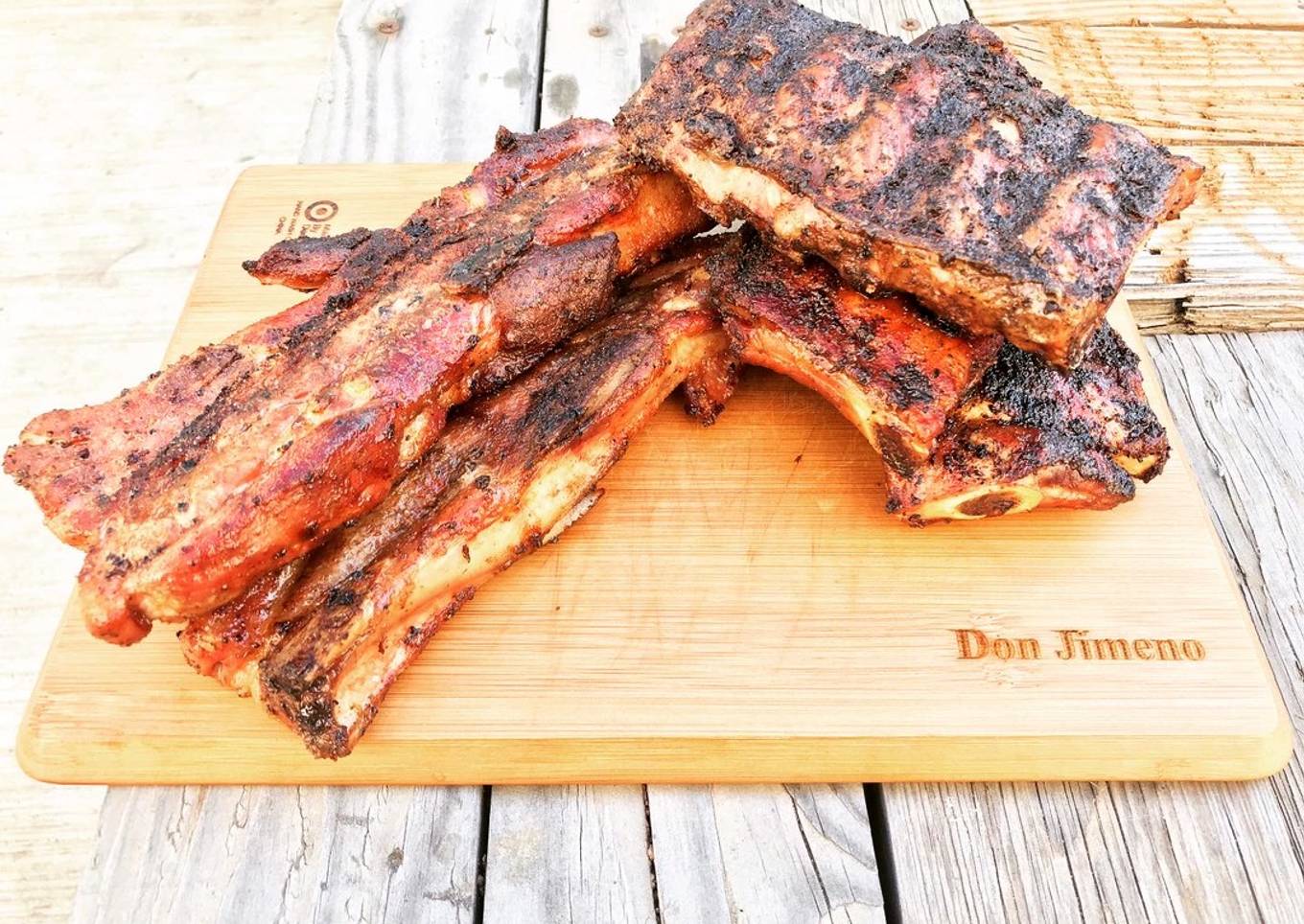 Costillar de cerdo y costilla cargada, ahumadas con rub sencillo pero de súper sabor