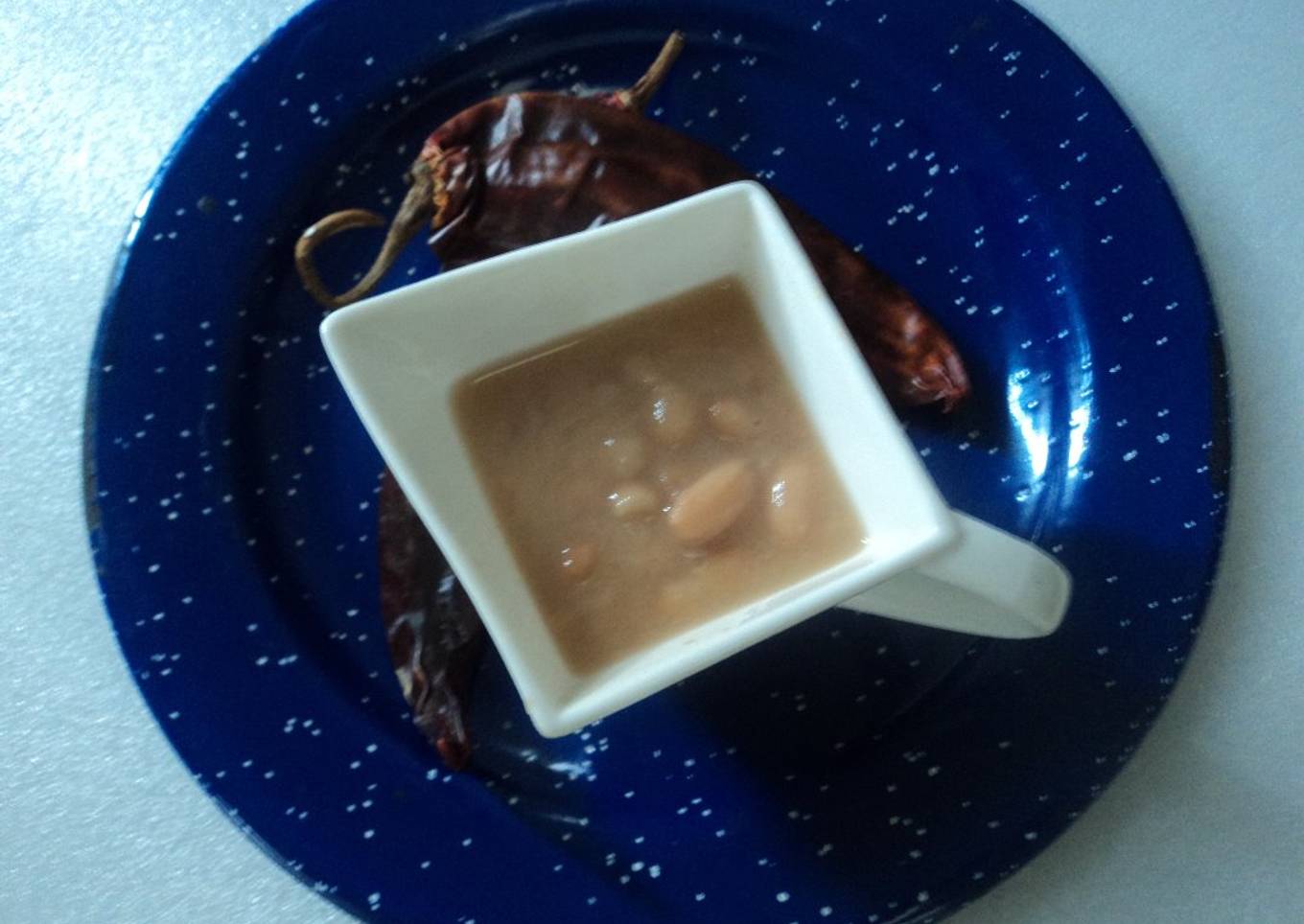 - Ponemos en un plato hondo o taza los frijolitos, en un plato plano junto con dos chiles dorados y llevamos a la mesa. En ocasiones alguna gente le ponía cebolla fresca picada y cilantro o epazote fresco picado.