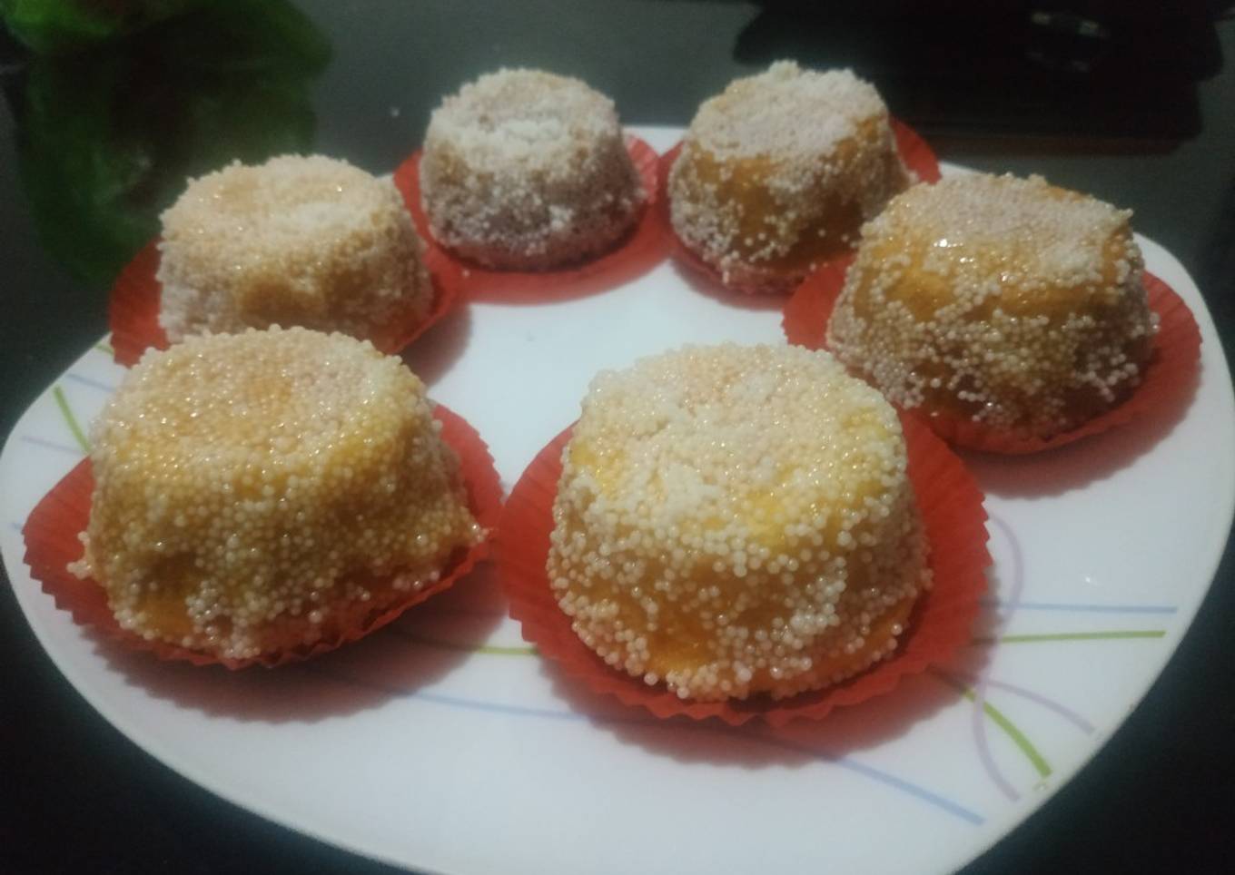 - Para la decoración, untarlas de la mermelada o glaseado de chabacano y después pasarlas por la grageas blancas si no tienes o consigues las grageas blancas se puede de otro color.