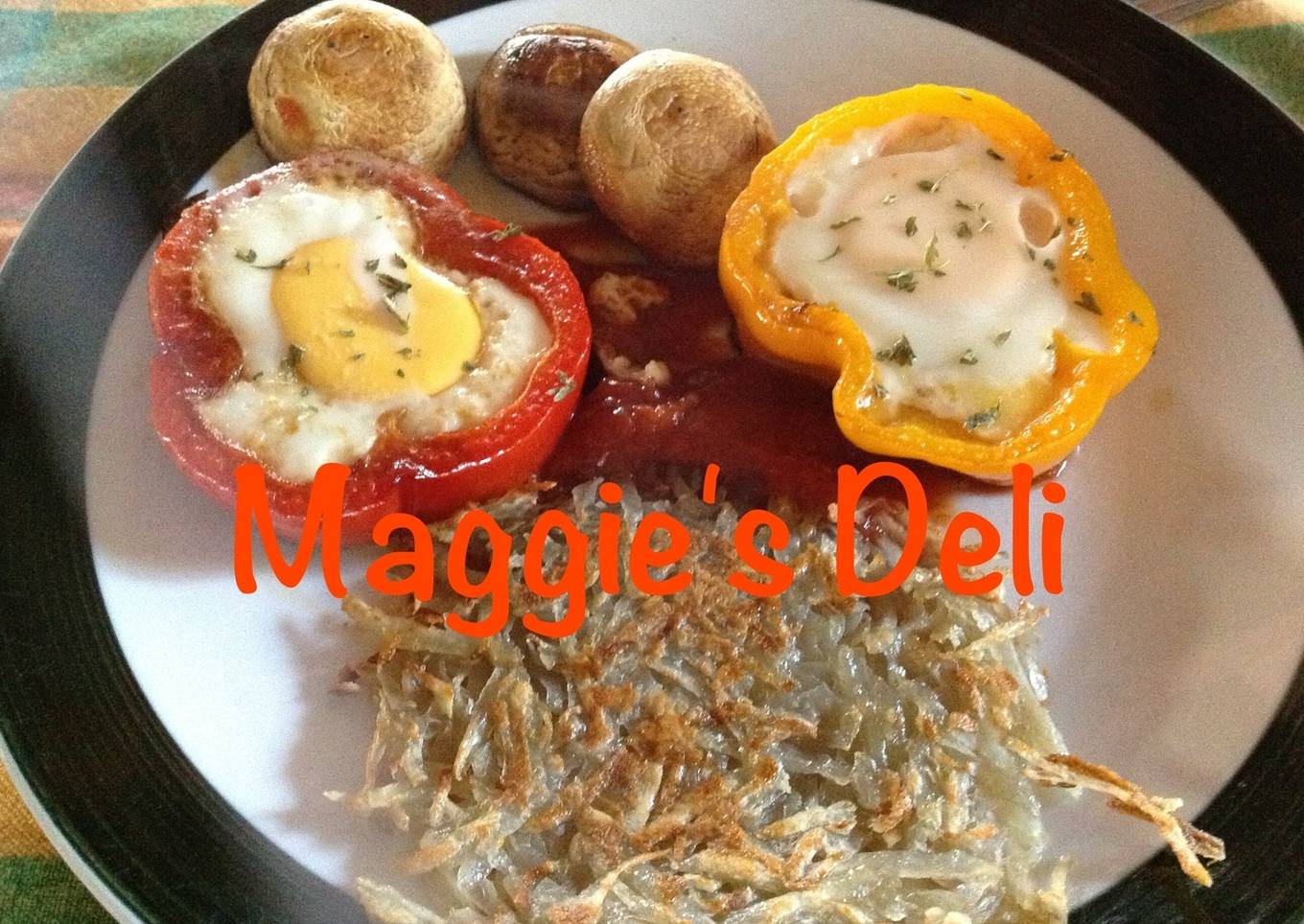 - Una vez vaciado el huevo sobre el pimiento tapar para cuaje mas rápido el huevo y no se queme la base, servir sobre salsa de tomate y espolvorear perejil fresco o seco.