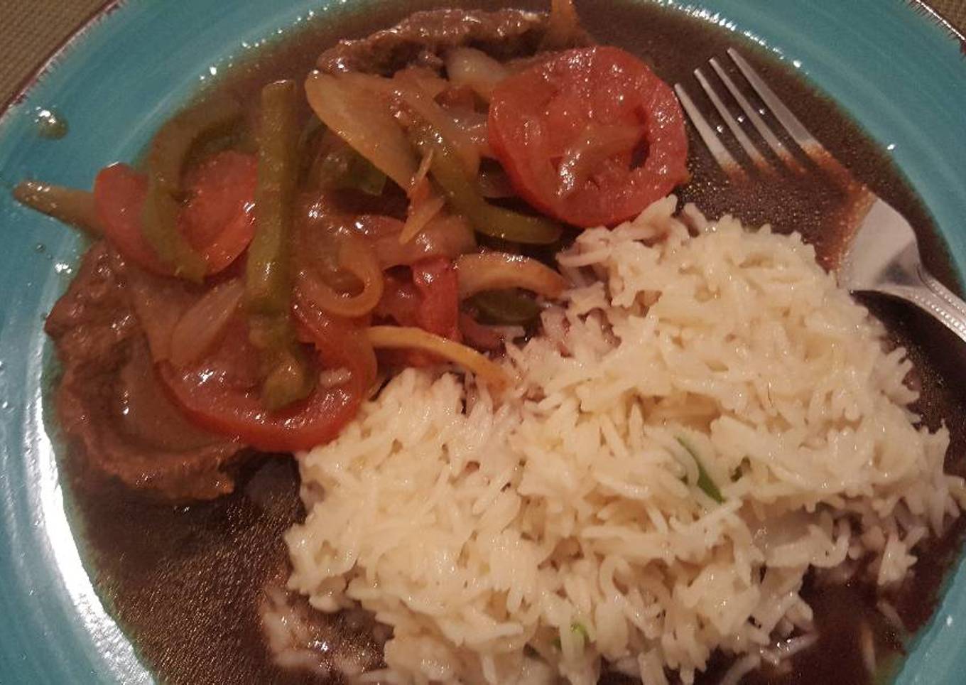 En buen Salvadoreño, nosotros le llamamos Bistec Encebollado y es uno de los platos favoritos para el almuerzo acompañado con su arroz y ensalada.